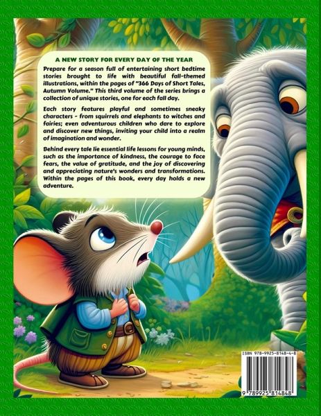 Make each night of the year a little more special! Reading to your child before bedtime is more than a timeless tradition; it opens the door to new worlds, broadens the horizons of imagination, and creates unshakable parent-child bonds. However, finding a new short bedtime story for each night of the year can be challenging. This collection of 5-minute bedtime stories, consisting of four volumes-one for each season-solves that problem! Each short bedtime story weaves important life lessons and morals, aiming to empower your child. The unique motivational and inspiring stories within this book cover a variety of subjects, tackling the big challenges children face today, as well as difficult discussions with your child, from playground squabbles to sibling rivalry, and even feelings of self-worth, assertiveness, and motivation. What makes this book so special: ¿ 91 beautifully illustrated stories: teaching valuable lessons about kindness, empathy, and being the best version of yourself. ¿ Real-life connections: stories that capture the joys and challenges of being a kid. ¿ Lessons that stick: powerful morals that shine through the stories, showing how to bounce back from setbacks, the importance of treating others with respect, protecting the environment, and believing in oneself. ¿ Pictures that come alive: illustrations that bring the stories to life and make the tales even more exciting. ¿ Conversation starters: use the stories to talk about the bigger picture, helping your child understand the world around them in a relatable way. ¿ Memories in the making: spend quality time with your child while empowering their character. "366 Days of Short Tales: Autumn Volume" is a journey of growth, challenge, and self-awareness. It's an invitation for children to explore their limitless imagination and discover that the real magic lies within-the magic of love, courage, and the power to shine. Whether you're searching for a unique bedtime story, a relaxing break during the day, or a special gift, this book is your child's friend for a season filled with exploration, wonder, and magic-an amazing fall journey, where every tale promises new lessons, fresh insights, and valuable experiences. This volume is perfect for young readers on a year-long adventure through the seasons of life. Click the BUY NOW button and let these stories plant the seeds of kindness and bravery in your child's heart, nurturing a spirit as vibrant and beautiful as autumn itself!