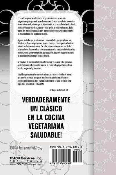 Es en el campo de la nutrición en el que se darán los pasos más agigantados para prevenir las enfermedades. En esto la medicina preventiva alcanzará su cenit, siendo que la alimentacíon es la esencia de la vida. Es el combustible que mantiene, repara y hace andar la máquina humana. Es la fuente del material necesario para mantener saludables, vigorosos y libres de enfermedades los tejidos del cuerpo. Alguien ha dicho que el sufrimiento y enfermedades que prevalecen por doquiera se deben mayormente a errores comunes con respecto a la dieta y esto es vardaderamente cierto. Se sabe actualmente que muchas de las enfermedades degenerativas como arteriosclerosis, o endurecimiento de las arterias, como suele ser llamado, son causadas mayormente por la manera en que alimentamos y el modo de vivir. Si "los dias de nuestra edad son setenta años" y durante ellos queremos gozar de buena salud, nuestra manera de comer influye positivamente en nuestra longevidad y bienestar. Este libro quiere enseñarnos cómo alimentar a nuestra familia de manera que puedan saborear con gusto los alimentos que los nutricionistas consideran necesarios para vivir saludablemente no sólo ahora en este siglo, sino tambíen en el SIGLO XXI.