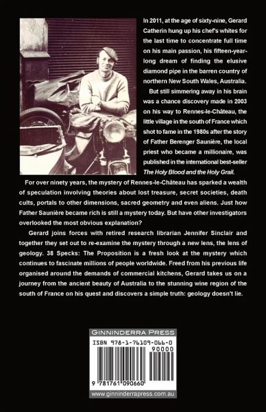 In 2011 at the age of sixty-nine, Gerard Catherin hung up his chef's whites for the last time to full time on his main passion, his fifteen-year-long dream of finding the elusive diamond pipe in the barren country of northern New South Wales Australia. But still simmering away in his brain was a chance discovery made in 2003 on his way to Rennes-le-Château; the little village in the south of France which shot to fame in the 1980s after the story of Father Berenger Saunière, the local priest who became a millionaire, was published in the international best seller The Holy Blood and the Holy Grail. For over ninety years, the mystery of Rennes-le-Château has sparked a wealth of speculation involving theories about lost treasure, societies, death cults, portals to other dimensions, sacred geometry and even aliens. Just how Father Saunière became rich is still a mystery today. But have other investigators overlooked the most obvious explanation? Gerard joins forces with retired research librarian Jennifer Sinclair and together they set out to re-examine the mystery through a new lens, the lens of geology. 38 Specks: The Proposition is a fresh look at the mystery which continues to fascinate millions of people worldwide. Freed from his previous life organised around the demands of commercial kitchens, Gerard takes us on a journey from the ancient beauty of Australia to the stunning wine region of the south of France on his quest and discovers a simple truth: geology doesn't lie.