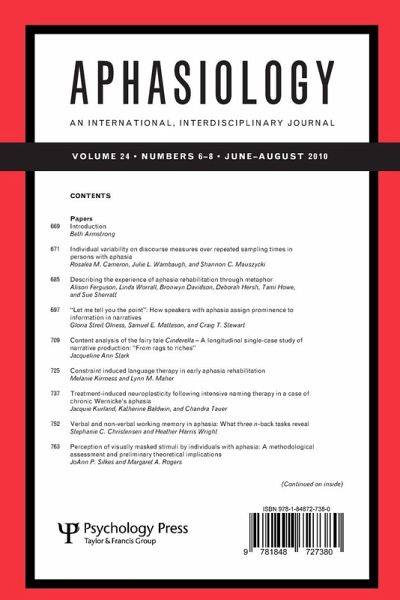 This year's special issue contains papers presented at the 39th Clinical Aphasiology Conference held in Keystone, Colorado in May, 2009. The issue contains another excellent mix of articles, demonstrating the depth and breadth of issues covered in clinical aphasiology at the present time. As a venue for the discussion of applied research in aphasia, CAC encourages researchers to explore the ultimate social ramifications of different assessment and treatment protocols, while retaining strong theoretical underpinnings related to both neurological and cognitive factors involved in the impairment.