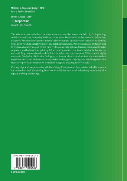 This volume explores the latest developments and contributions to the field of 3D bioprinting, and discusses its use for quality R&D and translation. The chapters in this book are divided into two parts: Part one covers generic themes in bioprinting to introduce novice readers to the field, while also providing experts with new and helpful information. Part two discusses protocols used to prepare, characterize, and print a variety of biomaterials, cells, and tissues. These chapters also emphasize methods used for printing defined and humanized constructs suitable for human tissue modelling in research and applicable to clinical product development. Written in the highly successful Methods in Molecular Biology series format, chapters include introductions to their respective topics, lists of the necessary materials and reagents, step-by-step, readily reproducible laboratory protocols, and tips on troubleshooting and avoiding known pitfalls.