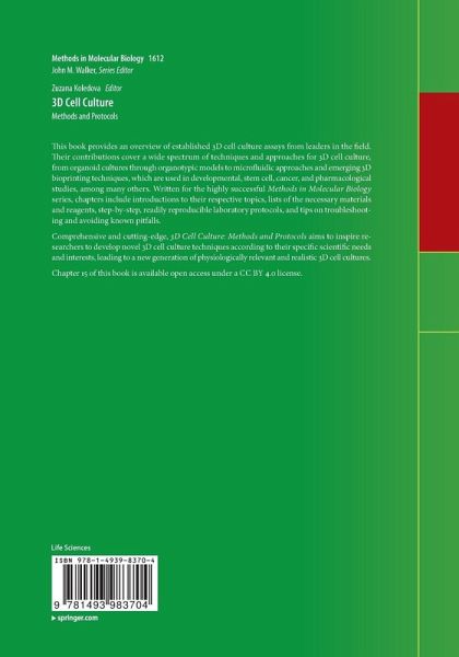 Comprehensive and cutting-edge, 3D Cell Culture: Methods and Protocols aims to inspire researchers to develop novel 3D cell culture techniques according to their specific scientific needs and interests, leading to a new generation of physiologically relevant and realistic 3D cell cultures.
