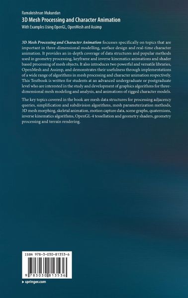 3D Mesh Processing and Character Animation focusses specifically on topics that are important in three-dimensional modelling, surface design and real-time character animation. It provides an in-depth coverage of data structures and popular methods used in geometry processing, keyframe and inverse kinematics animations and shader based processing of mesh objects. It also introduces two powerful and versatile libraries, OpenMesh and Assimp, and demonstrates their usefulness through implementations of a wide range of algorithms in mesh processing and character animation respectively. This Textbook is written for students at an advanced undergraduate or postgraduate level who are interested in the study and development of graphics algorithms for three-dimensional mesh modeling and analysis, and animations of rigged character models.