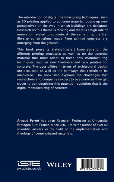 The introduction of digital manufacturing techniques, such as 3D printing applied to concrete material, opens up new perspectives on the way in which buildings are designed. Research on this theme is thriving and there is a high rate of innovation related to concrete. At the same time, the first life-size constructions made from printed concrete are emerging from the ground. This book presents state-of-the-art knowledge on the different printing processes as well as on the concrete material that must adapt to these new manufacturing techniques, such as new hardware and new printers for concrete. The possibilities in terms of architectural design are discussed as well as the pathways that remain to be uncovered. The book also explores the challenges that researchers and companies expect to overcome as they get closer to democratizing this potential revolution that is the digital manufacturing of concrete.