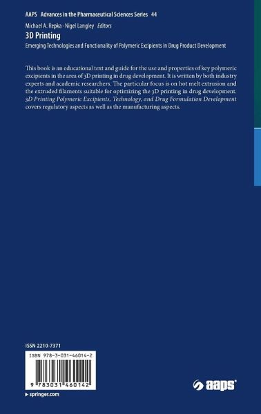 Authored by experts with a broad range of experience, extensive insight into the science of 3D printing technology used to produce these systems is provided. Highlighting viewpoints from the academic, polymer excipient, equipment, product development and regulatory communities, this comprehensive text compiles input from industry thought leaders to illustrate strategies and technologies for applying techniques of additive manufacturing for drug product and device development whilealso providing insight into the path forward for the technology in years to come.