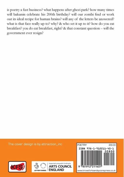 is poetry a fast business? what happens after ghezi park? how many times will bakunin celebrate his 200th birthday? will our zombi find or work out its ideal recipe for human brains? will any of the letters be answered? what is that face really up to? why? & who set it up to it? how do you eat breakfast? you do eat breakfast, right? & that constant question – will the government ever resign?