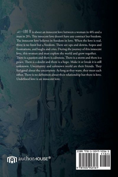 40+ Love IV is about an innocent love between a woman in 40's and a man in 20's. This innocent love doesn't have any contract but freedom. The innocent love believes in freedom in love. When the love is real, there is no limit but a freedom. There are ups and downs, hopes and frustrations, and laughs and cries. During the journey of this innocent love, this woman and man explore the world and grow together. There is a passion and there is calmness. There is a storm and there is a peace. There is a doubt and there is a hope. Make it or break it is still unknown. Uncertainty and unknown world are their friends. They feel good about the uncertainty. As long as they want, they meet each other. There is no definition about their relationship but there is love. Undefined love is an innocent love.