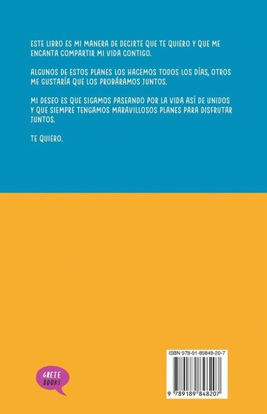 ¿Buscas un regalo romántico para sorprender a tu pareja? ¡Lo has encontrado! Este libro-regalo es una manera original y preciosa de demostrar a tu pareja lo mucho que la quieres y que deseas seguir compartiendo muchos planes con ella. Con planes románticos que seguramente hacéis y que, lo más importante, ¡quieres seguir haciendo siempre con él/ella/elle!, como pasear de la mano por la ciudad, desayunar en la cama, y otros originales, como ir a un autocine, haceros una sesión de fotos o hacer de turistas en vuestra ciudad, para animar la pareja y sentirse aún más unidos, salpicado con algunas preguntas para recordar los orígenes de vuestra relación, este regalo es un acierto seguro! Perfecto para aniversarios, San Valentín, cumpleaños, para parejas de largo o corto recorrido y de todas las edades.