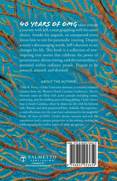 Discover the Power of Perseverance in the Face of Despair: Unveiling True Stories of Hope, Miracles, and Divine Timing that Will Stir Your Heart and Ignite Your Spirit. In the gripping pages of 40 Years of OMG, you will journey alongside Jeff, a man standing at the precipice of a career crossroad. As he battles the anguish of his doubts about becoming a paramedic, an unexpected incident on the interstate forces him to confront his fears head-on. The car ahead veers off the road, and the driver is unresponsive. Despite his recent training, Jeff is faced with a life-or-death situation that challenges his resolve. When a nurse on the scene declares the driver dead, Jeff must make a choice. Will he accept her verdict or trust his instincts and training? His decision in this pivotal moment sets the stage for a series of true stories that will leave you in awe of the power of perseverance and the divine timing of life's events. 40 Years of OMG is more than just a collection of stories; it's a testament to the human spirit's resilience and the profound impact of choosing to act, even when the odds are against you. It's about the moments that define us, the decisions that propel us forward, and the incredible power of faith in the face of adversity. Prepare to be amused, amazed, and shocked as you delve into these remarkable tales. Each story serves as a powerful reminder that there are times when we should bother, times when our actions can make a difference, and times when miracles happen right before our eyes. 40 Years of OMG will swell your heart, tickle your brain, and inspire you to believe in the extraordinary power of ordinary people. This book is a celebration of life's unexpected turns and the divine timing that guides us all. Dive into this riveting read and discover the transformative power of perseverance, hope, and divine intervention.