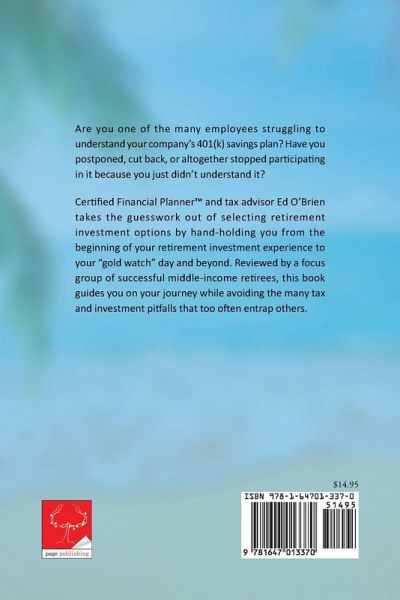 Are you one of the many employees struggling to understand your company's 401(k) savings plan? Have you postponed, cut back, or altogether stopped participating in it because you just didn't understand it? Certified Financial Planner™ and tax advisor Ed O'Brien takes the guesswork out of selecting retirement investment options by hand-holding you from the beginning of your retirement investment experience to your "gold watch" day and beyond. Reviewed by a focus group of successful middle-income retirees, this book guides you on your journey while avoiding the many tax and investment pitfalls that too often entrap others.