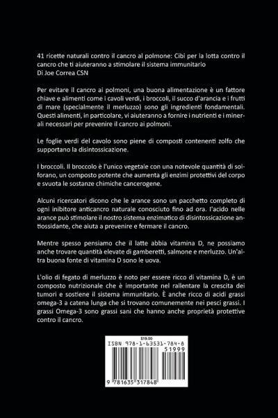 41 ricette naturali contro il cancro al polmone: Cibi per la lotta contro il cancro che ti aiuteranno a stimolare il sistema immunitario Di Joe Correa CSN Per evitare il cancro ai polmoni, una buona alimentazione è un fattore chiave e alimenti come i cavoli verdi, i broccoli, il succo d'arancia e i frutti di mare (specialmente il merluzzo) sono gli ingredienti fondamentali. Questi alimenti, in particolare, vi aiuteranno a fornire i nutrienti e i minerali necessari per prevenire il cancro ai polmoni. Le foglie verdi del cavolo sono piene di composti contenenti zolfo che supportano la disintossicazione. I broccoli. Il broccolo è l'unico vegetale con una notevole quantità di solforano, un composto potente che aumenta gli enzimi protettivi del corpo e svuota le sostanze chimiche cancerogene. Alcuni ricercatori dicono che le arance sono un pacchetto completo di ogni inibitore anticancro naturale conosciuto fino ad ora. I'acido nelle arance può stimolare il nostro sistema enzimatico di disintossicazione antiossidante, che aiuta a prevenire e fermare il cancro. Mentre spesso pensiamo che il latte abbia vitamina D, ne possiamo anche trovare quantità elevate di gamberetti, salmone e merluzzo. Un'altra buona fonte di vitamina D sono le uova. L'olio di fegato di merluzzo è noto per essere ricco di vitamina D, è un composto nutrizionale che è importante nel rallentare la crescita dei tumori e sostiene il sistema immunitario. È anche ricco di acidi grassi omega-3 a catena lunga che si trovano comunemente nei pesci grassi. I grassi Omega-3 sono grassi sani che hanno anche proprietà protettive contro il cancro.