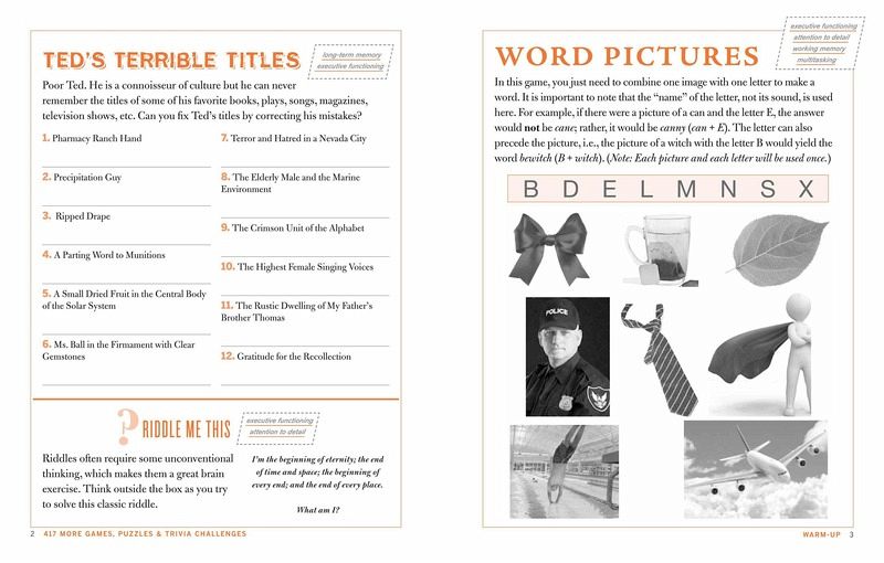 It’s never too late to improve your brain. Achieving and maintaining a higher level of mental fitness can be surprisingly fun-and to your brain, it’s healthy exercise. In this follow-up volume to her bestselling 399 Games, Puzzles & Trivia Challenges Specially Designed to Keep Your Brain Young, Nancy Linde offers a brand-new collection of puzzles, trivia challenges, brainteasers, and word games that are not only great fun to do but specifically designed to give your brain the kind of workout that stimulates neurogenesis, the process that allows the brain to grow new cells. This is the kind of exercise you’ll want to do, and all it takes is 10 to 15 minutes a day for a full workout.