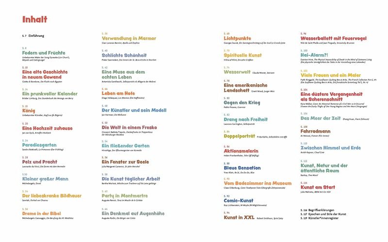 Die 42 Kunstwerke in diesem Buch bieten einen tollen Einstieg in die Welt der Kunst vom Mittelalter bis heute. Brad Finger erzählt die spannenden Hintergründe zu den groß und in Farbe abgebildeten Werken, von ihrer Bedeutung, ihrer Entstehungsgeschichte, den Ideen dahinter, ihrer Symbolik und darüber, was sie so besonders macht.