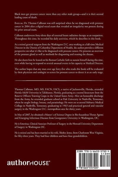 Black men get prostate cancer more than any other male group-and it is their second leading cause of death. Even so, Dr. Thomas Calhoun was still surprised when he we diagnosed with prostate cancer in 2004 after a digital rectal exam that revealed an irregularity not present during his prior annual exam. Calhoun underwent forty-three days of external beam radiation therapy as an outpatient. Throughout this time, he recorded his daily activities, which he describes in this book. As a retired general surgeon from the Washington D.C. area working as a full-time Medical Director in the District of Columbia Department of Health, the author provides a different perspective on what it's like to be diagnosed with prostate cancer. He presents an overview of the prostate gland as well as methods for diagnosing and treating the disease. He also shares how he leaned on his Roman Catholic faith to sustain himself during this time, even while having to respond to several unusual events in his capacity as Medical Director. The author hopes that any man over age forty-five who reads this book will be evaluated by their physician and urologist to screen for prostate cancer to detect it at an early stage.