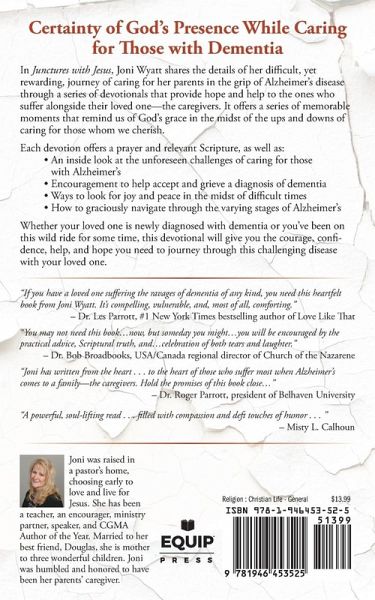 Dementia is a terrible reality of our broken world, where bodies and minds degrade from sickness, injury, or simply old age. Yet there are those in our midst, the caregivers, who walk beside Alzheimer's sufferers with courage, hope, and love. After going through such a trial, Joni Wyatt discovered unexpected blessings when she turned to God in response to her struggles. Joni developed this series of devotionals to minister to others going through the same experience and remind them of God's unfailing presence and love.