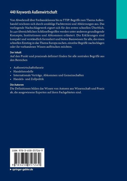 Von Abwehrzoll über Freihandelszone bis zu TTIP: Begriffe zum Thema Außenhandel zeichnen sich durch unzählige Fachtermini und Abkürzungen aus. Das vorliegende Nachschlagewerk eignet sich für den ersten schnellen Überblick. In 440 übersichtlichen Schlüsselbegriffen werden unter anderem grundlegende Konzepte, Institutionen und Abkommen erläutert. Die Erklärungen sind kompakt und verständlich formuliert und bieten Basiswissen für alle, die einen schnellen Einstieg in das Thema Europa suchen, einzelne Begriffe nachschlagen oder ihr vorhandenes Wissen auffrischen möchten.
