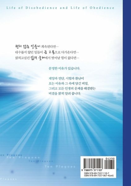 하나님께서 열 재앙을 기록하게 하신 것은 왜 시험 환난이 오고 재앙이 임하는가를 깨우쳐 주심으로 모든 인생의 문제를 해결받아 재앙과 상관이 없는 삶을 영위하게 하시고자 함입니다. 1863년 4월 30일, 남북전쟁이 극에 이르렀을 때 미국의 제16대 대통령 아브라함 링컨은 금식 기도의 날을 선포했습니다. "오늘의 무서운 재앙은 선조들의 죄에 대한 형벌일 수도 있습니다. 우리는 계속적인 성공과 부요 속에서 너무 교만해져 있었습니다. 우리는 너무 자신만만한 나머지 우리를 창조하신 하나님께 기도하는 것을 잊고 지냈습니다. 이제는 겸손한 자세로 민족의 죄를 고백하고 하나님의 자비와 은혜를 빌어야 합니다. 이것이 미국 국민의 의무입니다." 미국인들은 위대한 지도자의 제안을 따라 이날 하루 동안 음식을 먹지 않고 모두 금식 기도를 드렸습니다. 링컨은 겸손히 하나님을 의뢰하여 아메리카합중국이 해체될 위기에서 나라를 구했습니다. 이처럼 모든 문제의 해답은 하나님 안에서 찾을 수 있습니다. 세기를 뛰어넘어 전도자들의 입술을 통해 복음이 널리 전파되었지만 많은 사람들은 "하나님을 믿을 바에야 나를 믿으라."며 하나님의 말씀에 귀기울이지 않습니다. 더욱이 생태계 파괴로 인한 이상 기온과 자연 재해가 도처에서 일어나고 있고, 비약적인 의학의 발달에도 불구하고 더욱 강력해진 신종 질병들이 늘어가고 있는 것이 현실입니다. 그러므로 하나님을 멀리하며 스스로 자신에 찬 고백을 하는 사람이라도 정작 내면의 삶을 들여다보면 대부분 근심과 고통, 가난과 질병이라는 단어를 빼고서는 이야기할 수 없습니다. 건강을 자신하던 사람이 하루아침에 건강을 잃기도 하고 뜻하지 않은 일로 사랑하는 가족을 잃거나 재산을 잃고 고통받기도 합니다. 사업터, 일터에 크고 작은 어려움들이 찾아오기도 하지요.