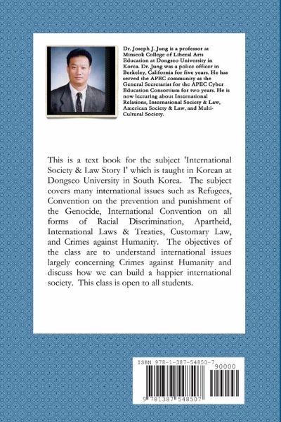 This is a textbook for the subject 'International Society & Law Story I' which is taught in Korean at Dongseo University in South Korea. The subject covers many international issues such as Refugees, Convention on the prevention and punishment of the Genocide, International Convention on all forms of Racial Discrimination, Apartheid, International Laws & Treaties, Customary Law, and Crimes against Humanity. The objectives of the class are to understand international issues largely concerning Crimes against Humanity and discuss how we can build a happier international society. This class is open to all students.