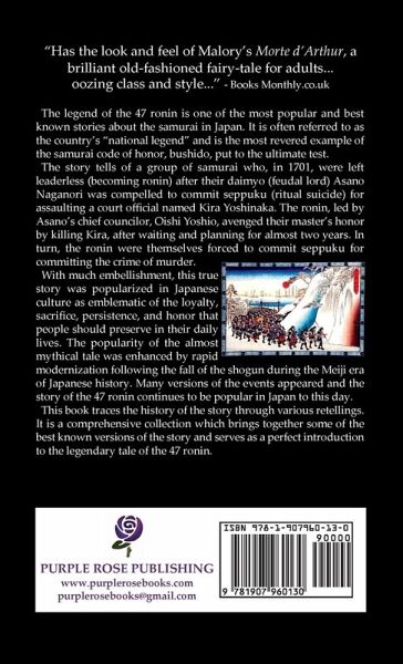 "A story of honor and bloody revenge." The legend of the 47 ronin is one of the most popular and best known stories about the samurai in Japan. It is often referred to as the country's "national legend" and is the most revered example of the samurai code of honor, bushido, put to the ultimate test. The story tells of a group of samurai who, in 1701, were left leaderless (becoming ronin) after their daimyo (feudal lord) Asano Naganori was compelled to commit seppuku (ritual suicide) for assaulting a court official named Kira Yoshinaka. The ronin, led by Asano's chief councilor, Oishi Yoshio, avenged their master's honor by killing Kira, after waiting and planning for almost two years. In turn, the ronin were themselves forced to commit seppuku for committing the crime of murder. With much embellishment, this true story was popularized in Japanese culture as emblematic of the loyalty, sacrifice, persistence, and honor that people should preserve in their daily lives. The popularity of the almost mythical tale was enhanced by rapid modernization following the fall of the shogun during the Meiji era of Japanese history. Many versions of the events appeared and the story of the 47 ronin continues to be popular in Japan to this day. This book traces the history of the story through various retellings. It includes the first English version to appear in print, from Isaac Titsingh's "Illustrations of Japan", published in 1822, plus the second from "The Capital of the Tycoon" by Rutherford Alcock. It also includes in full "The Forty-Seven Ronins" from "Tales of Old Japan" by A. B. Mitford (plus his account of seppuku/hara-kiri), "The Loyal Ronins" by Shunsui Tamenaga, translated by Shiuichiro Saito and Edward Greey and "The Forty-Seven Ronin" by James Murdoch from "A History of Japan". This is a comprehensive collection which brings together some of the best known versions of the story and serves as a perfect introduction to the legendary tale of the 47 ronin. For more information please visit Purple Rose at www.purplerosebooks.com and view our other titles and new releases.