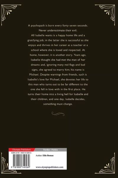 A psychopath is born every forty-seven seconds. Never underestimate their evil. All Isabelle wants is a happy home life and a gratifying job; in the latter she is successful as she enjoys and thrives in her career as a teacher at a school where she is loved and respected. At home, however, it is another story. Years ago, Isabelle thought she had met the man of her dreams and, ignoring many red flags and bad signs, she agreed to marry him; his name is Michael. Despite warnings from friends, such is Isabelle's love for Michael, she devotes her life to this man who turns out to be far different to the one she fell in love with in the first place. He turns their home into a living hell for Isabelle and their children, and one day, Isabelle decides, something must change.