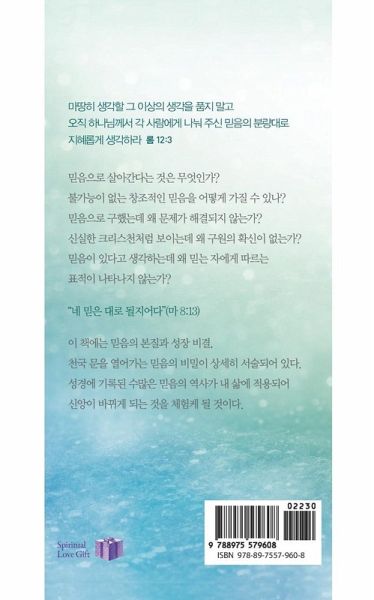 하나님께서 기뻐하시는 믿음의 차원에 이르기를 기대하며 오늘날 예수 그리스도를 영접해 신앙생활을 한다고 하지만 정작 구원의 확신이 없고, 과연 자신은 구원받을 만한 믿음이 있는지, 어느 정도 믿음을 소유해야 구원받을 수 있는지 분별치 못하는 사람이 많습니다. 또한 교회 안에서 신앙생활이 어떠하냐에 따라 믿음이 '크다' 혹은 '작다'라고 말할 수는 있지만 하나님께서 얼마나 인정하시는 믿음인지, 자신의 믿음은 어느 정도인지 믿음의 분량을 정확히 측량하기란 쉽지 않습니다. ...