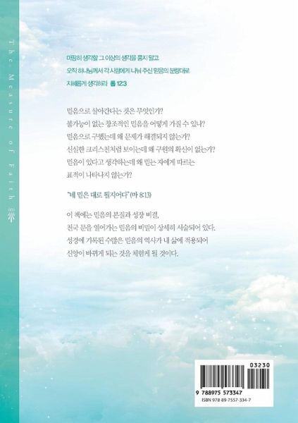 마땅히 생각할 그 이상의 생각을 품지 말고 오직 하나님께서 각 사람에게 나눠 주신 믿음의 분량대로 지혜롭게 생각하라 (롬 12:3) 오늘날 신앙생활을 한다고 하지만 정작 구원의 확신이 없고, 과연 자신은 구원받을 만한 믿음이 있는지, 어느 정도 믿음을 소유해야 구원받을 수 있는지 분별치 못하는 사람들이 많습니다. 또한 신앙생활이 어떠하냐에 따라 믿음이 '크다' 혹은 '작다'라고 말할 수는 있지만 하나님께서 얼마나 인정하시는 믿음인지, 자신의 믿음은 어느 정도인지 믿음의 분량을 정확히 측량하기란 쉽지 않습니다. 하나님께서 인정하시는 믿음은 행함이 없는 육적인 믿음이 아니라 행함이 따르는 영적인 믿음입니다. 육적인 믿음은 하나님의 말씀을 듣고 배우며 지식으로 쌓으면 소유할 수 있지만 영적인 믿음은 내가 갖고 싶다고 해서 마음대로 가질 수 있는 것이 아니라 하나님께서 주셔야만 받을 수 있습니다(롬 12:3). 제가 믿음으로 성경 66권에 담긴 하나님의 깊은 뜻을 깨우치고자 무수한 금식과 기도를 쌓았을 때에 하나님께서는 성경의 많은 난해 구절을 풀어 주시며 영계의 비밀에 대해 알려 주셨습니다. 사람마다 믿음의 분량이 다르다는 것과, 믿음의 분량에 따라 천국의 처소가 분류되어 있음도 알려 주셨지요. 우리의 본향은 천국이고 이 땅은 우리가 나그네처럼 잠시 머물다 가는 곳입니다. 낯선 지역을 여행할 때 지도나 이정표가 필요하듯이 우리가 천국에 갈 때도 마찬가지입니다. 우리가 믿음의 분량을 알게 되면 자신의 믿음의 현주소를 파악할 수 있을 뿐 아니라 앞으로 믿음의 여행을 어떻게 떠나야 할지 쉽게 분별할 수 있습니다. 사랑의 하나님께서는 그의 자녀들이 온전한 믿음을 소유하여 하나님의 보좌가 있는 새 예루살렘에 들어와 영원토록 함께하기를 학수고대하십니다. 그래서 예수님께서 "하늘에 계신 너희 아버지의 온전하심과 같이 너희도 온전하라"(마 5:48), "할 수 있거든이 무슨 말이냐 믿는 자에게는 능치 못할 일이 없느니라"(막 9:23)고 교훈하신 것입니다. 이 책은 하나님의 말씀을 기준으로 믿음의 분량과 천국을 다섯 단계로 구분하여 설명하면서 자신의 믿음을 점검할 수 있도록 구성하였습니다. 믿음의 분량과 천국은 더 많은 단계로 나누어 설명할 수도 있지만 사람 편에서 확실하게 느낄 수 있도록 구분한 것이니 믿음의 선진들과 자신을 비교하며 더욱 힘차게 천국을 침노할 수 있을 것입니다. 아울러 온전한 믿음을 기뻐하시는 하나님의 마음을 깊이 깨우쳐 많은 분들이 신속히 장성한 아비의 믿음을 소유하시기 바랍니다. 『믿음의 분량』은 지난 2002년에 발간된 이래 각국어로 번역되어 국내뿐 아니라 세계 곳곳에서 호응 받는 책으로 널리 읽혀 왔습니다. 그 후 하나님께서 더욱 깊이 있게 풀어 주신 내용이 있어 이번에 보완하여 새롭게 발간하였습니다. 이 모든 것을 이루기까지 인도하신 하나님께 감사와 영광을 돌리며 빈금선 편집국장을 비롯하여 수고해 주신 분들께도 감사드립니다.
