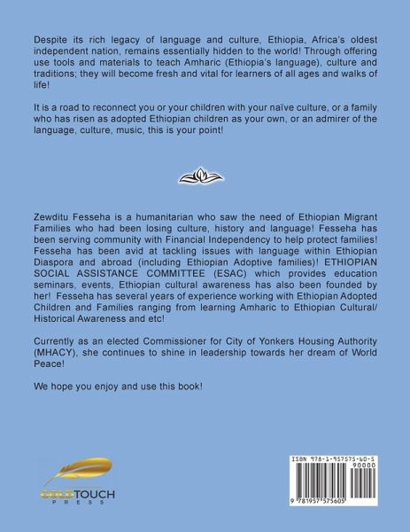 Despite its rich legacy of language and culture, Ethiopia, Africa's oldest independent nation, remains essentially hidden to the world! Through offering use tools and materials to teach Amharic (Ethiopia's language), culture and traditions; they will become fresh and vital for learners of all ages and walks of life! It is a road to reconnect you or your children with your naïve culture, or a family who has risen as adopted Ethiopian children as your own, or an admirer of the language, culture, music, this is your point!
