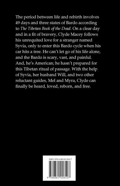 The period between life and rebirth involves 49 days and three states of Bardo according to The Tibetan Book of the Dead. On a clear day and in a fit of bravery, Clyde Macey follows his unrequited love for a stranger named Syvia, only to enter this Bardo cycle when his car hits a tree. He can't let go of his life alone, and the Bardo is scary, vast, and painful. And, he's American; he hasn't prepared for this Tibetan ritual of passage. With the help of Syvia, her husband Will, and two other reluctant guides, Mel and Myra, Clyde can finally be heard, loved, reborn, and free.