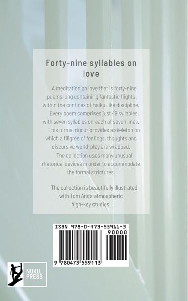 A meditation forty-nine poems long on love that combines creative flights within the confines of a haiku-like discipline. Every poem comprises just 49 syllables, with seven syllables on each of seven lines. This formal rigour provides a skeleton on which a filigree of feelings, thoughts and discursive world-play can be wrapped. The collection uses many unusual rhetorical devices in order to accommodate the formal strictures. This is the second of three volumes, with one other completed. The other title is a meditation on life: 49 Syllables on Life. The texts are accompanied by Tom Ang's atmospheric high-key images in which light itself is the subject.