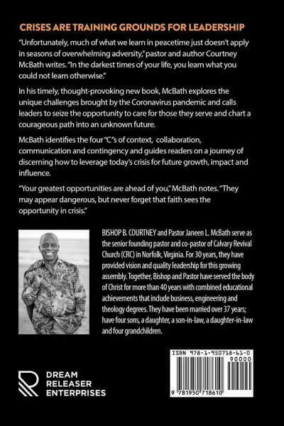 Crises are training grounds for leadership. "Unfortunately, much of what we learn in peacetime just doesn't apply in seasons of overwhelming adversity," pastor and author Courtney McBath writes. "In the darkest times of your life, you learn what you could not learn otherwise." In his timely, thought-provoking new book, McBath explores the unique challenges brought by the Coronavirus pandemic and calls leaders to seize the opportunity to care for those they serve and chart a courageous path into an unknown future. McBath identifies the four "C"s of context, collaboration, communication and contingency and guides readers on a journey of discerning how to leverage today's crisis for future growth, impact and influence. "Your greatest opportunities are ahead of you!" McBath notes. "They may appear dangerous, but never forget that faith sees the opportunity in crisis!"