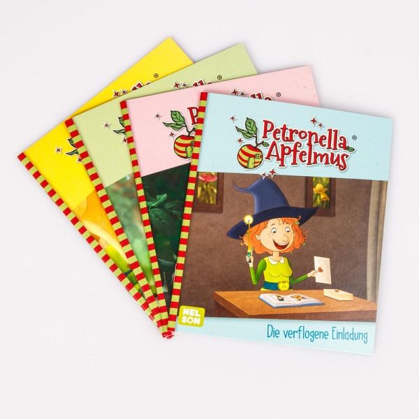 Vier neue Minibücher zur TV-Serie der beliebten kleinen Hexe Petronella Apfelmus! Im malerisch-wildwüchsigen Garten der Zwillinge Luis und Lea wohnt die chaotische Apfelhexe Petronella. Sie erlebt zahlreiche spannende und lustige Abenteuer in einer faszinierenden Welt mitten in der Natur ... Mit diesen Mini-Büchern: Der verlorene Ring, Die verflogene Einladung, Alles singt, Die Doppelgängerin * Minibuch-Set: Vier kurze Geschichten mit beliebten Figuren * Praktisches kleines Format: 10x12 cm - perfekt für kleine Kinderhände und unterwegs * Lesemotivation und Konzentration: Bunter Vorlesespaß für Kinder ab 3 Jahren Vorlesegeschichten zum Mitnehmen für kleine Hexe-Fans!