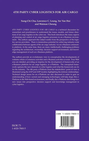4th Party Cyber Logistics For Air Cargo is a technical discussion for researchers and practitioners to understand the issues, models, and future directions of air cargo logistics in the cyber era. This book introduces the many aspects of planning and control of air cargo logistics processes in an e-Business environment. The authors approach this subject matter from the perspective of the logistics service providers. There is tremendous potential of achieving industry-wide collaboration between agents of the air cargo industry via an e-Business community platform. At the same time, there are many intellectually challenging problems regarding the architecture, ownership, decision support environment, and knowledge management of such an e-Business platform.