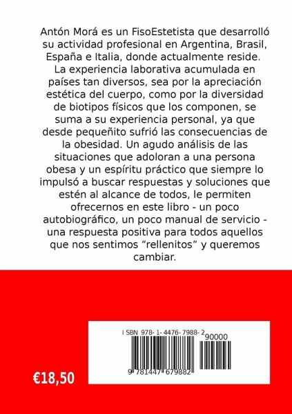 Este es un libro imperdible para la persona que se siente obesa, que siente que su cuerpo tiene que cambiar para mejor y que está decidida a hacerlo ya! A través de ejercitaciones simples y eficaces y de explicaciones muy sencillas, Antón Morá nos lleva a descubrir un nuevo enfoque sobre la alimentación, las dietas y las tendencias sociales que influyen sobre nuestra conducta alimentaria. Es un libro eminentemente práctico, con muchas testimoniansas personales che ejemplifican las diversas situaciones tratadas. Las explicaciones resurgen enriquecidas gracias a un enfoque filosófico de alto contenido humano, un poco irónico, alegre y sustancialmente positivo en la idea y la intención.