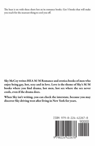 Sky McCoy writes HEA M/M Romance and erotica books of men who enjoy being gay, hot, sexy and in love. Love is the theme of Sky's M/M books where you find drama, hot men, hot sex where the sex never cools, even if the drama does. When Sky isn't writing, you can check the interstate, because you may discover Sky driving west after living in New York for years. You can reach Sky here skymccoy0@gmail.com anytime you want to chat. Sky's favorite authors are, Elle Frank, J. R. Ward, Nora Phoenix, Gianna Holmes, Riley Hart, and Josh Lanyon. Sky is constantly adding more authors to the list of favorites.