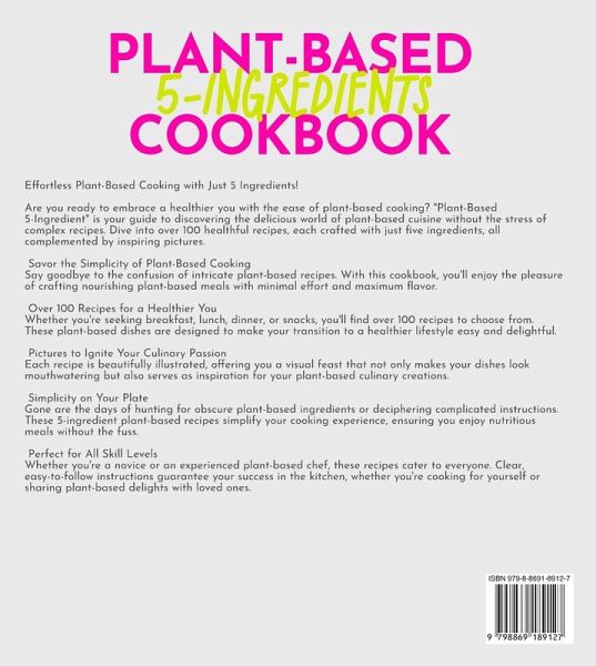Effortless Plant-Based Cooking with Just 5 Ingredients! Are you ready to embrace a healthier you with the ease of plant-based cooking? "Plant-Based 5-Ingredient" is your guide to discovering the delicious world of plant-based cuisine without the stress of complex recipes. Dive into over 100 healthful recipes, each crafted with just five ingredients, all complemented by inspiring pictures. ¿¿¿¿ Savor the Simplicity of Plant-Based Cooking Say goodbye to the confusion of intricate plant-based recipes. With this cookbook, you'll enjoy the pleasure of crafting nourishing plant-based meals with minimal effort and maximum flavor. ¿¿¿¿ Over 100 Recipes for a Healthier You Whether you're seeking breakfast, lunch, dinner, or snacks, you'll find over 100 recipes to choose from. These plant-based dishes are designed to make your transition to a healthier lifestyle easy and delightful. ¿¿¿¿ Pictures to Ignite Your Culinary Passion Each recipe is beautifully illustrated, offering you a visual feast that not only makes your dishes look mouthwatering but also serves as inspiration for your plant-based culinary creations. ¿¿¿¿ Simplicity on Your Plate Gone are the days of hunting for obscure plant-based ingredients or deciphering complicated instructions. These 5-ingredient plant-based recipes simplify your cooking experience, ensuring you enjoy nutritious meals without the fuss. ¿¿¿¿¿¿¿¿ Perfect for All Skill Levels Whether you're a novice or an experienced plant-based chef, these recipes cater to everyone. Clear, easy-to-follow instructions guarantee your success in the kitchen, whether you're cooking for yourself or sharing plant-based delights with loved ones. ¿¿¿¿ Benefits of "Plant-Based 5-Ingredient" This isn't just a cookbook; it's your gateway to a healthier lifestyle. Here's what you can expect: Effortless Plant-Based Living: Say goodbye to diet-related stress. Variety Aplenty: Over 100 recipes to keep your plant-based journey exciting. Visual Delight: Gorgeous images to spark your culinary creativity. Simple Pleasures: Enjoy plant-based meals without the culinary fuss. Cooking Confidence: Recipes suited for all skill levels. Share the Health: Delight your family and friends with nutritious creations. Budget-Friendly Wellness: Embrace a healthier lifestyle without breaking the bank.