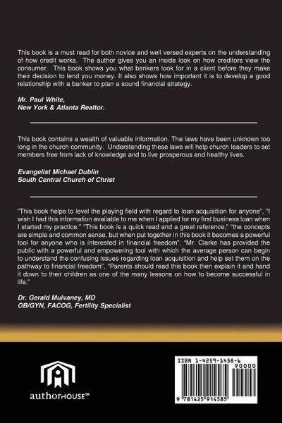 This book is a need to know roadmap for an individual's journey to comprehend the secrets to Personal Credit and financial freedom. It provides knowledge on the "how" and "why" of Credit: · How & Why to Get It · How & Why to Grow It · How & Why to Repair It · How & Why to Maintain It It provides a simple approach to the fundamental principles of attaining Personal Credit and financial freedom that are not taught in schools. Thus, this book is essential for our younger generation to ensure that healthy financial decisions are made early in life. Moreover, for our not so young generation, this book is important for those of us who may not have known that these principles work in the manner described by the author. John Maxwell, author of Thinking for a Change, says "One of the reasons people don't achieve their dreams is that they desire to change their results without changing their thinking." He also quotes billionaire entrepreneur Richard M. Devos who states, "The only thing that stands between a man and what he wants from life is often merely the will to try it and the faith to believe that it is possible." In the lands of my birth and rebirth, I learned to payback what I borrow and not to think narrow. For every problem there is a solution and for every solution there is a problem! The problems of debt and lacking access to Capital are common amongst millions of people worldwide. This book guides the thinking and behavior of individuals in attaining the ultimate goal of Personal Credit and financial freedom. It is also a practical tool for creating one's own solution to eliminating the problems of debt and obtaining access to Capital.