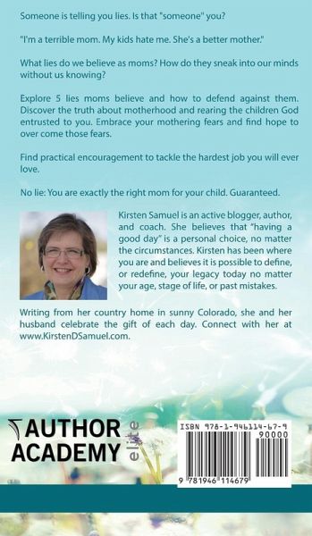 Someone is telling you lies. Is that "someone" you? "I'm a terrible mom. My kids hate me. She's a better mother." What lies do we believe as moms? How do they sneak into our minds without us knowing? Explore 5 lies moms believe and how to defend against them. Discover the truth about motherhood and rearing the children God entrusted to you. Embrace your mothering fears and find hope to over come those fears. Find practical encouragement to tackle the hardest job you will ever love. No lie: You are exactly the right mom for your child. Guaranteed.