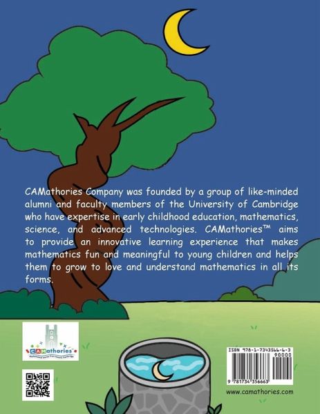 A group of playful and funny little monkeys makes a silly mistake. They think that the moon has fallen into a well and then they try to catch the moon! Readers count from 1 to 5 and recite the string of number words to five. "5 Little Monkeys Catching the Moon" is a folktale from China and is the third of the three books in the first series of the CAMathories(TM) Folktale Mathematics(TM) curriculum (3-4 years old). Series 1: Count and Recite 1 to 5. Two other books in the same series are: "Goldilocks and the Three Bears" (from Britain), and "Paco and the Giant Chili Plant" (from Mexico). This series helps readers to develop an awareness of the mathematics principle of 'order irrelevance' - we can count things in any order but the number stays the same. CAMathories(TM) Folktale Mathematics(TM) Series books are fun math-learning folktales designed, written, and peer-reviewed by renowned (current and previous) researchers and faculty members of mathematics and early years learning from the University of Cambridge.