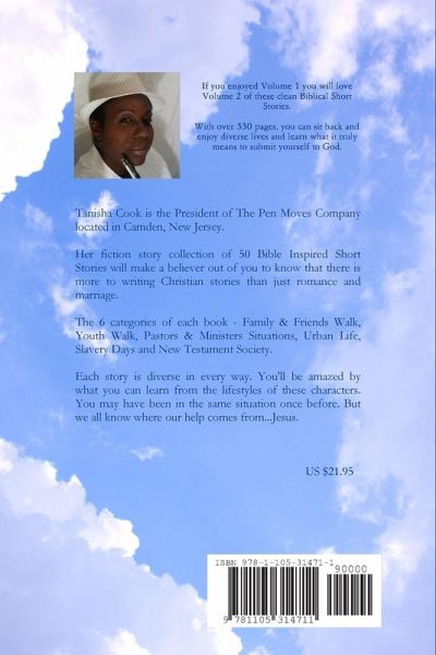 Volume 2 of 50 Bible Based Short Stories has fictional characters that will encourage your soul. The Short Stories come in 6 categories - Family & Friends Walk, Youth Walk, Pastors & Ministers Situations, Urban Life, New Testament Society and Slavery Days. Jesus is real and the characters know this. This volume has over 330 pages for your enjoyment.