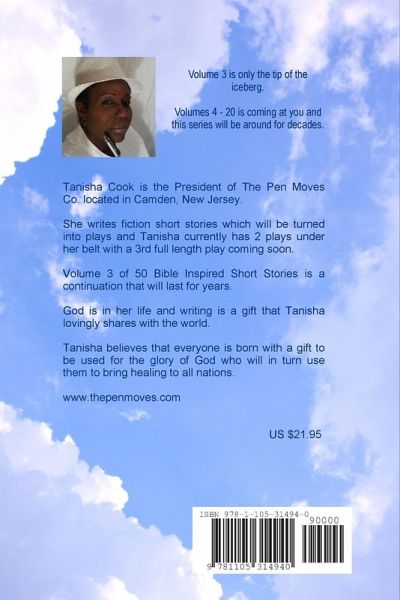 Volume 3 of 50 Bible Inspired Short Stories has fictional characters that will encourage your soul. The short stories come in 6 categories - Family & Friends Walk, Youth Walk, Pastors & Ministers Situations, Urban Life, Slavery Days & New Testament Society. These are clean stories, the way God would have it. Jesus is real and these characters know this.