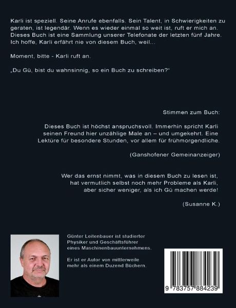 Wer mir auf Facebook folgt, kennt die Geschichten über meinen besten Freund Karli, die ich seit 2018 in unregelmäßigen Abständen poste. Ich glaube sogar, die meisten amüsieren sich tatsächlich darüber. Jedenfalls ist es nur so erklärbar, dass mehrfach der Wunsch an mich herangetragen wurde, diese Geschichten zu sammeln und in Buchform herauszugeben. Ich habe das stets abgelehnt oder verschoben, weil ich das meinem Karli einfach nicht antun will. Aber meine Kinder studieren jetzt, und ich bin alt und brauche das Geld. Sorry, Karli!Natürlich heißt Karli in Wahrheit nicht Karli. So gemein bin ich auch wieder nicht. Ich habe einfach einen Namen genommen, der weit verbreitet ist, um die Spur zu Karl-Heinz S. zu verwischen. Außerdem sagt sowieso niemand "Karl-Heinz" zu ihm, alle nennen ihn seit unserer gemeinsamen Schulzeit immer nur "Karli", sogar seine besseren Hälften. Karli hatte über die Jahre nämlich verschiedene bessere Hälften, lediglich seine schlechtere Hälfte blieb immer gleich, und von der lest ihr in diesem Werk, denn mit ihr (grammatikalisches Geschlecht, nicht physisches!) bin ich ja befreundet.