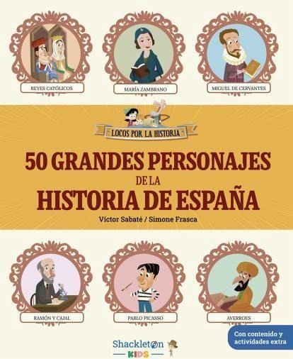 Desde Miguelón hasta Montserrat Caballé, descubre los 50 personajes más importantes de la historia de España. ¿Sabías que Trajano y Adriano, dos de los mejores emperadores de la Roma antigua, nacieron en la Andalucía actual? ¿Y que Lope de Vega fue un maravilloso escritor de obras de teatro? Y es que España ha sido la cuna de algunos de los personajes más famosos de la historia. Grandes artistas como Picasso, Gaudí, Goya o Maruja Mallo, científicos universales como Ramón y Cajal o Severo Ochoa, pensadores como Séneca, Averroes o María Zambrano, reyes y conquistadores como el Cid Campeador o Felipe II, genios de las letras como Cervantes, Rosalía de Castro o Lorca? En este libro, descubrirás 50 grandes personajes de la historia de nuestro país y aprenderás cómo fue su vida, la época en la que vivieron, y cuáles fueron los logros que les hicieron merecedores de un lugar en la historia. Descubre la manera más divertida de conocer la historia con los libros de la colección Locos por la historia, de Shackleton Kids.