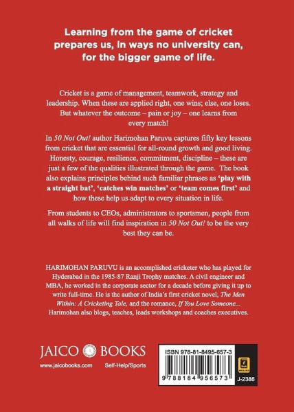 Powerful Life Lessons from Cricket to Excel in Our Lives Learning from the game of cricket prepares us, in ways no university can, for the bigger game of life. Cricket is a game of management, teamwork, strategy and leadership. When these are applied right, one wins; else, one loses.But whatever the outcome - pain or joy - one learns from every match! In 50 Not Out! author Harimohan Paruvu captures fifty key lessons from cricket that are essential for all-round growth and good living. Honesty, courage, resilience, commitment, discipline - these are just a few of the qualities illustrated through the game. The book also explains principles behind such familiar phrases as 'play with a straight bat', 'catches win matches' or 'team comes first' and how these help us adapt to every situation in life. From students to CEOs, administrators to sportsmen, people from all walks of life will find inspiration in 50 Not Out! to be the very best they can be. HARIMOHAN PARUVU is an accomplished cricketer who has played for Hyderabad in the 1985-87 Ranji Trophy matches. A civil engineer and MBA, he worked in the corporate sector for a decade before giving it up to write full-time. He is the author of India's first cricket novel The Men Within: A Cricketing Tale and the romance If you love someone. Harimohan also blogs, teaches, leads workshops and coaches executives.