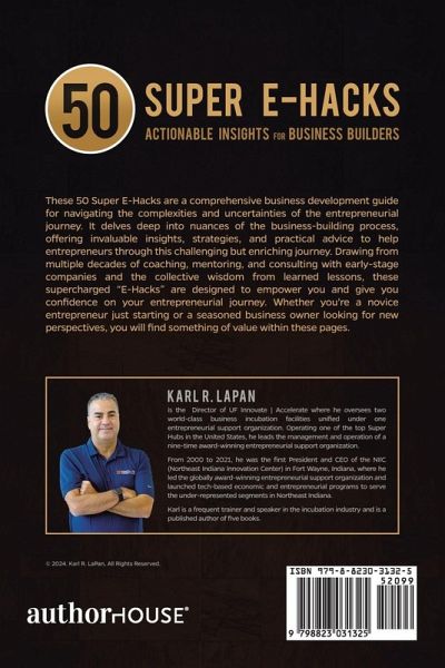 50 Super E-Hacks serves as a guide, motivating entrepreneurs to navigate the intricate landscape of business development. Drawing from extensive experience and distilled wisdom, it offers nuanced strategies to empower entrepreneurs at every stage of their journey. Born from my original work, Entrepreneurial Hacks Practical Insights for Business Builders, these insights provide unique perspectives. I encourage you to embrace introspection and deliberate engagement with self-assessment inquiries, and consider areas for improvement and innovation wherever possible. Each section is rich with actionable advice and real-world illustrations, facilitating seamless integration into daily operations. Whether launching a startup or steering an established enterprise, use these resources to better yourself, your business, and at the forefront...your community. Aspire higher in everything you do and dream. Mediocrity is miserable.