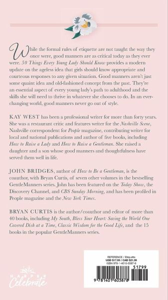 A modern update on the ageless idea that girls should know appropriate and courteous responses to any situation. Good manners arenâ t just a quaint and old-fashioned concept. Theyâ re an essential aspect of every young ladyâ s path to adulthood and the skills sheâ ll need in whatever she chooses to do.