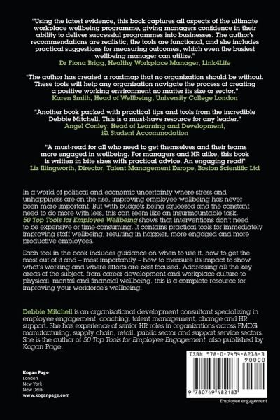 In a world of political and economic uncertainty where stress and unhappiness are on the rise, improving employee wellbeing has never been more important. But with budgets being squeezed and the constant need to do more with less, this can seem like an insurmountable task. 50 Top Tools for Employee Wellbeing shows that interventions don't need to be expensive or time-consuming. It contains practical tools for immediately improving staff wellbeing, resulting in happier, more engaged and more productive employees.
