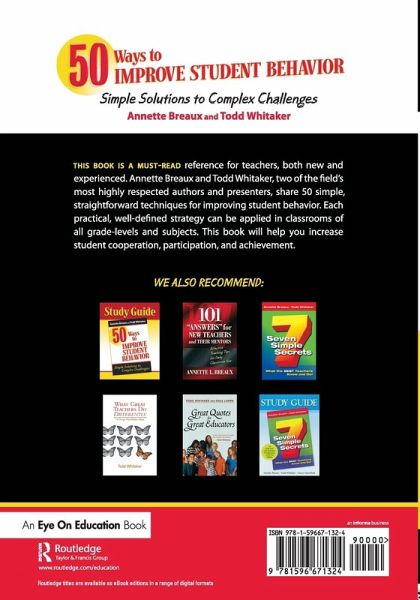 New from best-selling authors Annette Breaux and Todd Whitaker, 50 Ways to Improve Student Behavior: Simple Solutions to Complex Challenges is a must-read reference for teachers, both new and experienced!