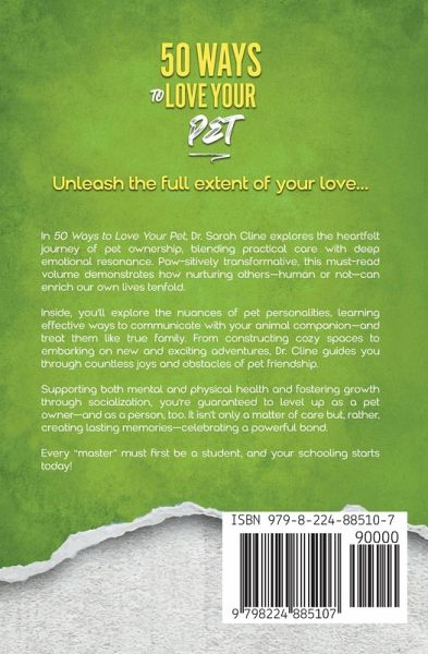 Unleash the full extent of your love... In 50 Ways to Love Your Pet, Dr. Sarah Cline explores the heartfelt journey of pet ownership, blending practical care with deep emotional resonance. Paw-sitively transformative, this must-read volume demonstrates how nurturing others-human or not-can enrich our own lives tenfold. Inside, you'll explore the nuances of pet personalities, learning effective ways to communicate with your animal companion-and treat them like true family. From constructing cozy spaces to embarking on new and exciting adventures, Dr. Cline guides you through countless joys and obstacles of pet friendship. Supporting both mental and physical health and fostering growth through socialization, you're guaranteed to level up as a pet owner-and as a person, too. It isn't only a matter of care but, rather, creating lasting memories-celebrating a powerful bond. Every "master" must first be a student, and your schooling starts today!