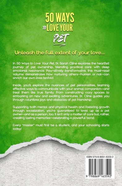 Unleash the full extent of your love... In 50 Ways to Love Your Pet, Dr. Sarah Cline explores the heartfelt journey of pet ownership, blending practical care with deep emotional resonance. Paw-sitively transformative, this must-read volume demonstrates how nurturing others-human or not-can enrich our own lives tenfold. Inside, you'll explore the nuances of pet personalities, learning effective ways to communicate with your animal companion-and treat them like true family. From constructing cozy spaces to embarking on new and exciting adventures, Dr. Cline guides you through countless joys and obstacles of pet friendship. Supporting both mental and physical health and fostering growth through socialization, you're guaranteed to level up as a pet owner-and as a person, too. It isn't only a matter of care but, rather, creating lasting memories-celebrating a powerful bond. Every "master" must first be a student, and your schooling starts today!