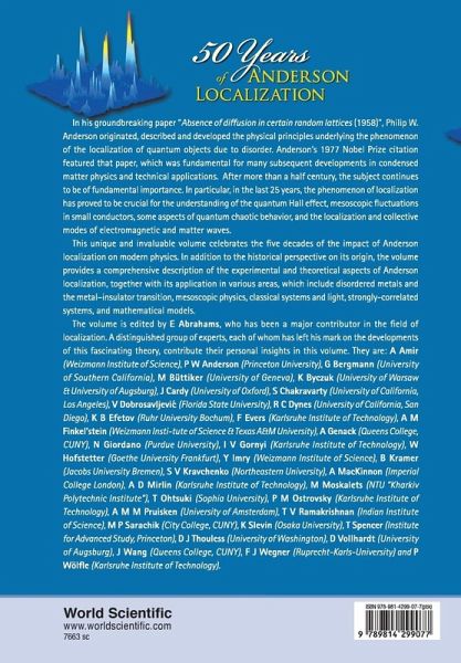 In his groundbreaking paper "Absence of diffusion in certain random lattices (1958)," Philip W. Anderson originated, described and developed the physical principles underlying the phenomenon of the localization of quantum objects due to disorder. Anderson's 1977 Nobel Prize citation featured that paper, which was fundamental for many subsequent developments in condensed matter theory and technical applications. After more than a half century, the subject continues to be of fundamental importance. In particular, in the last 25 years, the phenomenon of localization has proved to be crucial for the understanding of the Quantum Hall Effect, mesoscopic fluctuations in small conductors, some aspects of quantum chaotic behavior, and most recently the localization and collective modes of electromagnetic and matter waves. This unique and invaluable volume celebrates the five decades of the impact of Anderson Localization on modern physics. In addition to the historical perspective on its origin, the volume provides a comprehensive description of the experimental and theoretical aspects of Anderson localization, together with its application in various areas, which include disordered metals and the metal-insulator transition, mesoscopic physics, classical systems and light, strongly-correlated systems, and mathematical models. The volume is edited by E Abrahams, who, as a major contributor in the field of localization, has published several papers on the celebrated scaling theory of localization. A distinguished group of experts, each of whom has left his mark on the developments of this fascinating theory, contribute their personal insights in this volume. They are: P W Anderson (Nobel Laureate, 1977), G Bergmann (University of Southern California), M Bttiker (University of Geneva), J Cardy (Oxford University), S Chakravarty (University of California, Los Angeles), V Dobrosavljevic (Florida State University), R C Dynes (University of California, San Diego), K B Efetov (Ru